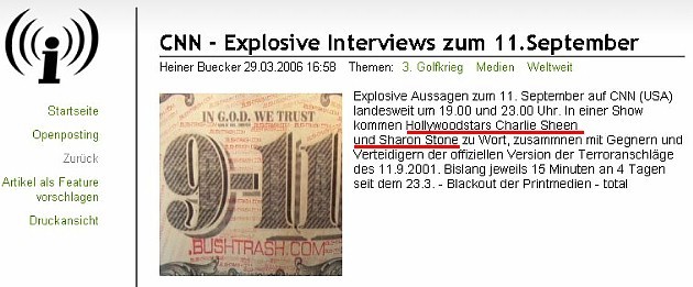 Sie verwies auf den Dokumentarfilm "Loose Change"