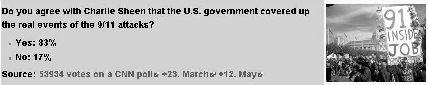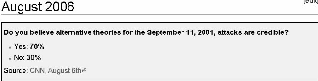 Die Umfrage, die telefonisch mit 1010 Erwachsenen durchgeführt wurde fand heraus, das wachsender Unmut und Entfremdung gegenüber der Regierung ein wesentlicher Grund für die zunehmende Akzeptanz gegenüber Verschwörungstheorien darstellt, die sich mit den Anschlägen des 11.9.2001 beschäftigen.